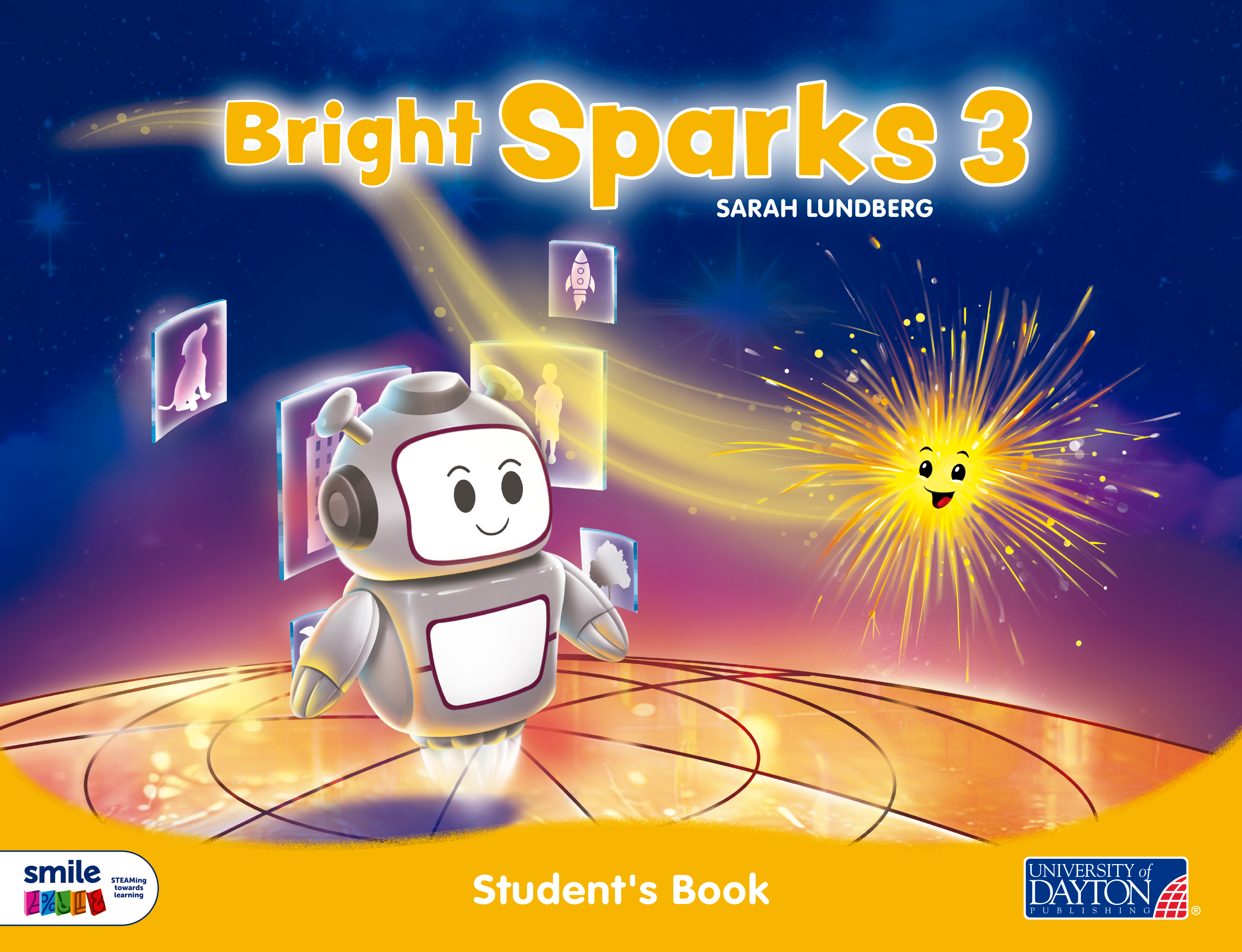Bright Sparks is a three-level program designed for preschool children to learn English in a simple and engaging way. It incorporates stories, games, songs, projects, and creative activities to help children understand and enjoy the language naturally.